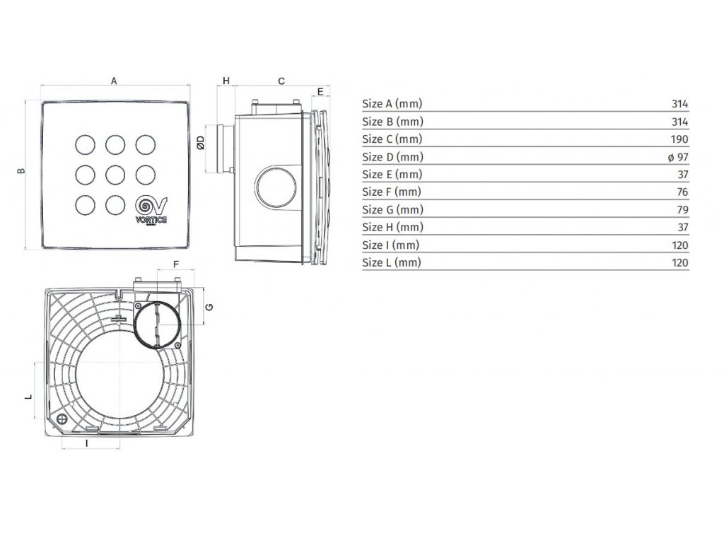Tříotáčkový radiální odsávací ventilátor s časovým doběhem 3 až 20 minut na zabudování do zdi nebo stropu (podhledu) vhodný pro odsávání středních a velkých místností v bytech, kancelářích, včetně místností s vysokou relativní vlhkostí (koupelny, WC, sklepy).