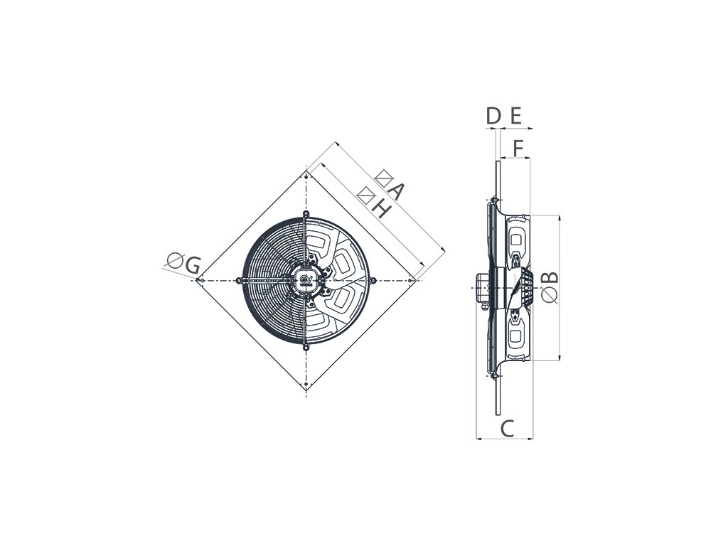 - Aerodynamicky vytvarovaný rám ventilátoru je vyroben z oceli s fosfátovou povrchovou úpravou, natřený kladívkovou epoxidovou barvou, který zaručuje dokonalou ochranu proti venkovním povětrnostním vlivům