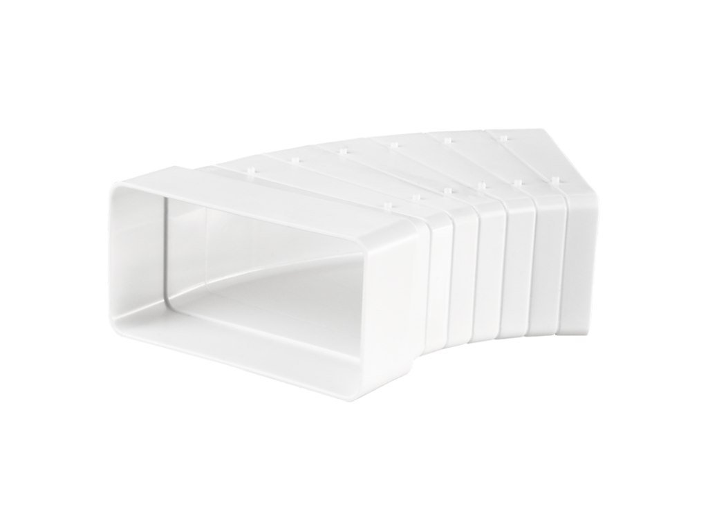 Oblouk k hranatému ventilačnímu potrubí - ↔↕ 110x55 mm (rozměr), hladký povrch, mnohoúhelný, jednoduchá + rychlá montáž, užívané (k digestoři, rekuperaci, pro přívod vzduchu ke krbu...), rozměry 110 × 55 mm (Š × V), hmotnost ~ 0,22 kgJednoduchá manipulace