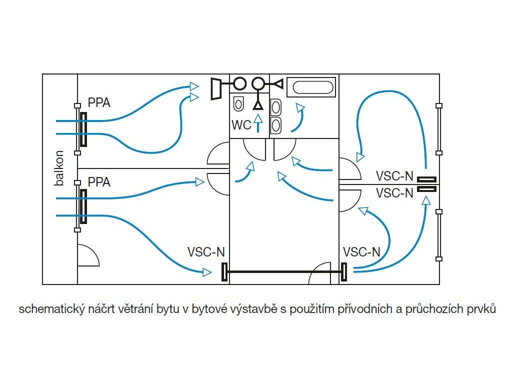 Kruhový průchozí stěnový ventil s vynikajícím akustickým útlumem.