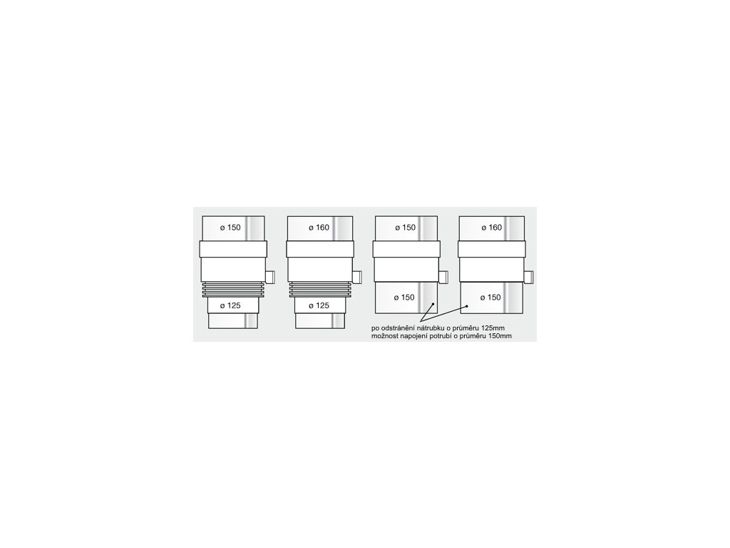 | ? ⚪️🔵 Průměr potrubí (mm): | 125, 150, 160 |
