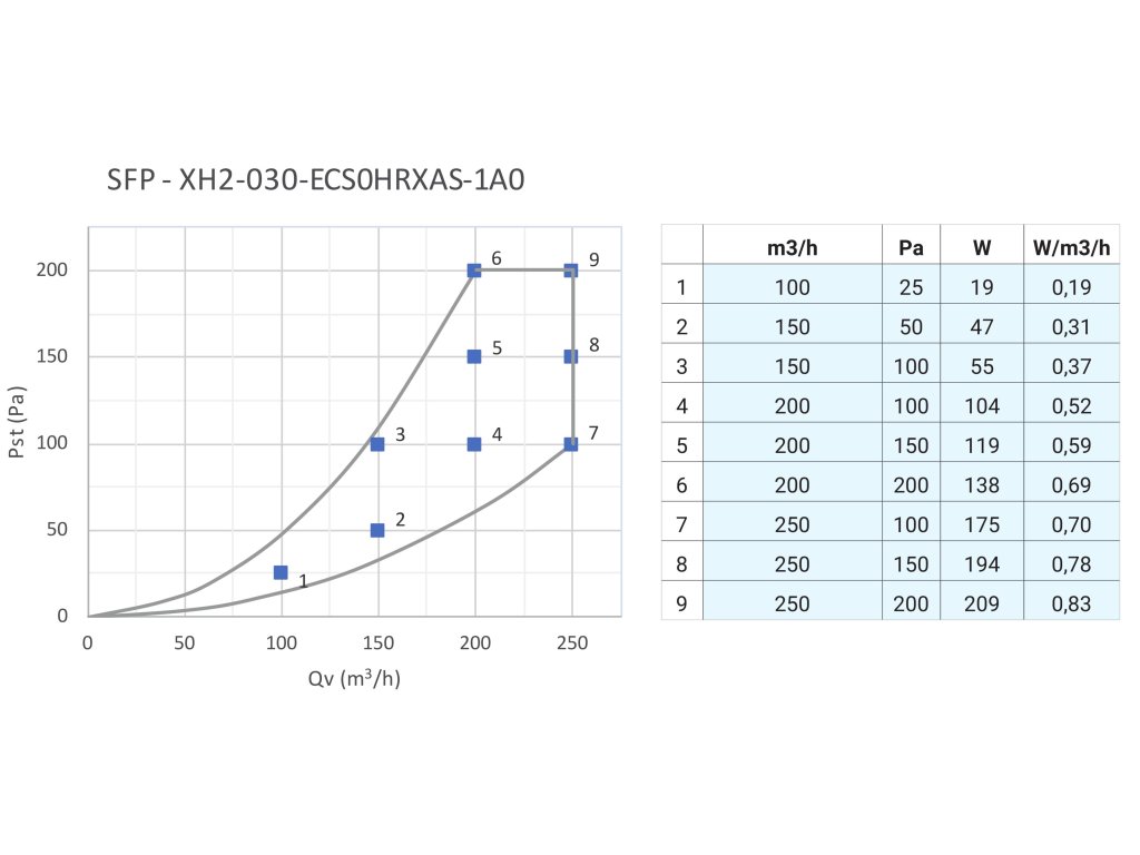 Centrální rekuperace - ⌀ 125 mm, přívod + odvod z interiéru vpravo, průtok 250 m3/h, tepelný výměník, energetická třída A, účinnost 88,3 %, bez předehřevu, bypass mechanický, filtrace M5 (lze dokoupit F7 - V22235), krytí IP 20, ventilátor s EC motorem, hlučnost 37,8 db (A), režim boost, dětský zámek, protimrazová ochrana, Wi-Fi připojení (s modulem V22596), volitelně (Co2 čidlo, vlhkostní čidlo), rozměry 800 × 600 mm (Š×V), hmotnost 16 kg
