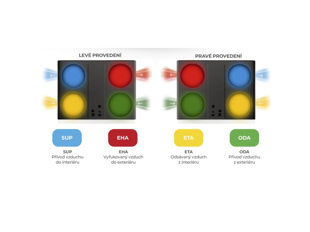 | Provedení: | UNI - univerzální připojení, HRV - protiproudý výměník, WiFi - chytré bezdrátové ovládání, BYP - mechanický letní by-pass |