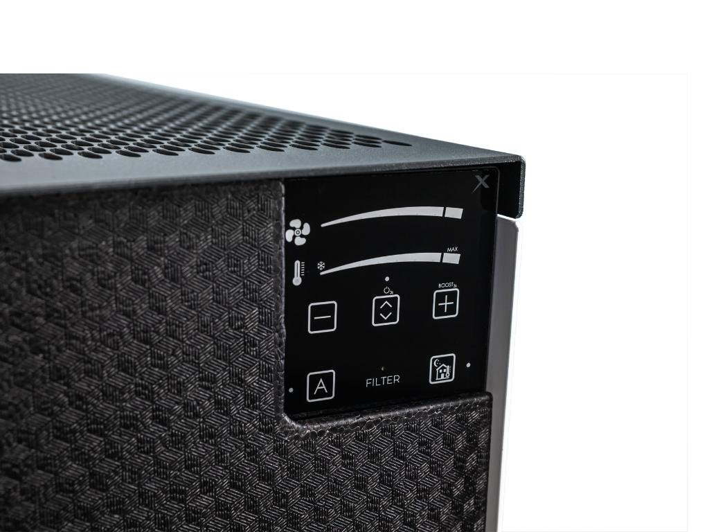 Standardně je jednotka dodávána s filtry třídy M5 (COARSE 70% ISO 16890). Při požadavku na vyšší úroveň čištění lze objednat filtry třídy F7 (ePM1 60 % ISO 16890) jako příslušenství. Při zanesení filtrů jednotka na ovladači blikáním diody signalizuje potřebu jejich výměny. Výměnu filtrů musí obsluha potvrdit stiskem tlačítka „Reset“ v dolní části jednotky. Přední kryt lze demontovat povolením ručních šroubů s drážkovanou plastovou hlavou. Jednotka se po sejmutí předního krytu automaticky vypne.