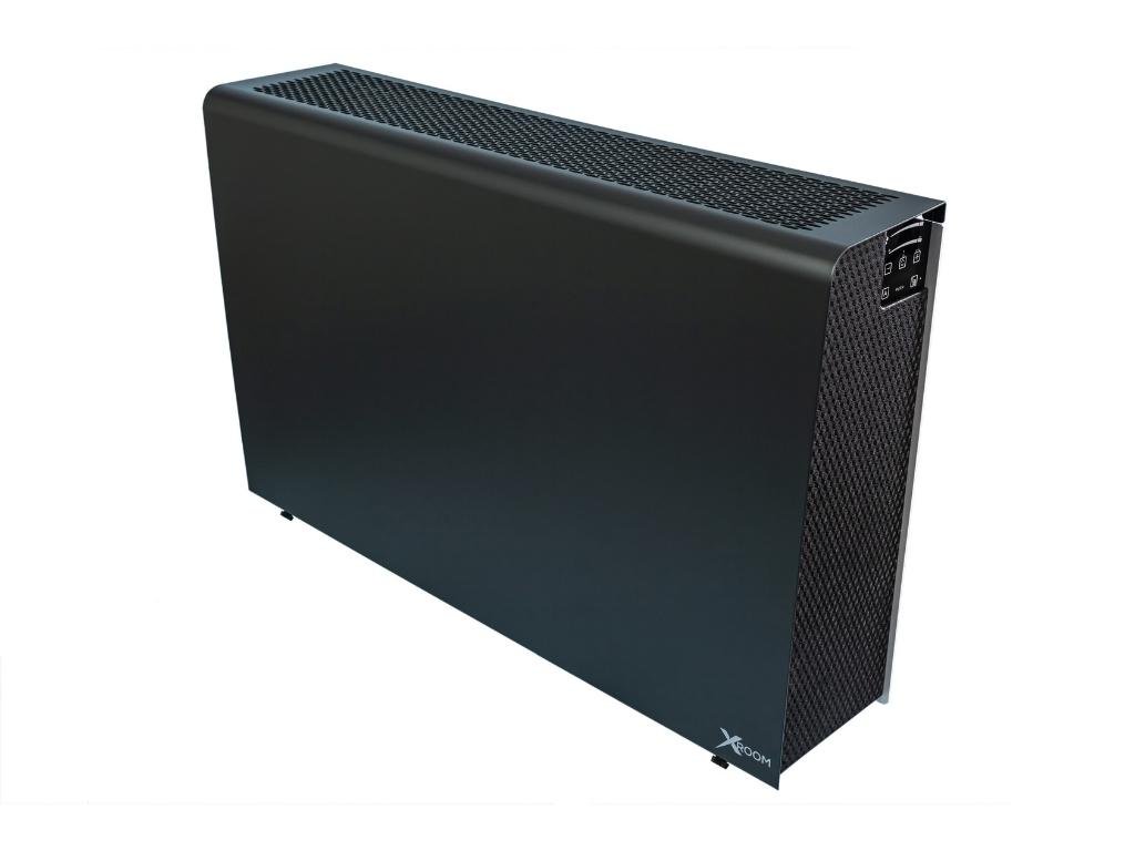 Decentrální (lokální) rekuperační jednotka 2v1 od českého výrobce Xvent XROOM HRV 100-CO2 s tepelným rekuperátorem a krytem v antracitové barvě RAL 7016. Unikátní zařízení spojující větrací jednotku s vytápěcí jednotkou, oba tyto systémy fungují nezávisle na sobě. Jednota má široké využití nejen v obytných a rodinných domech ale také v hotelech, kancelářích, školách či nemocnicích. XROOM vyniká tichým provozem. Součástí jednotky je také čidlo CO2.